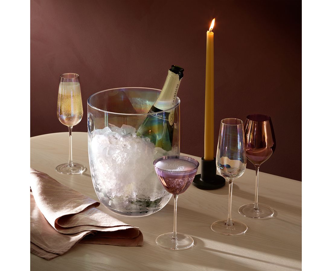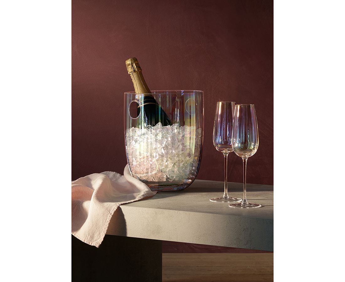 Набор из двух фужеров и ведерка для льда подойдет для эффектной подачи шампанского.