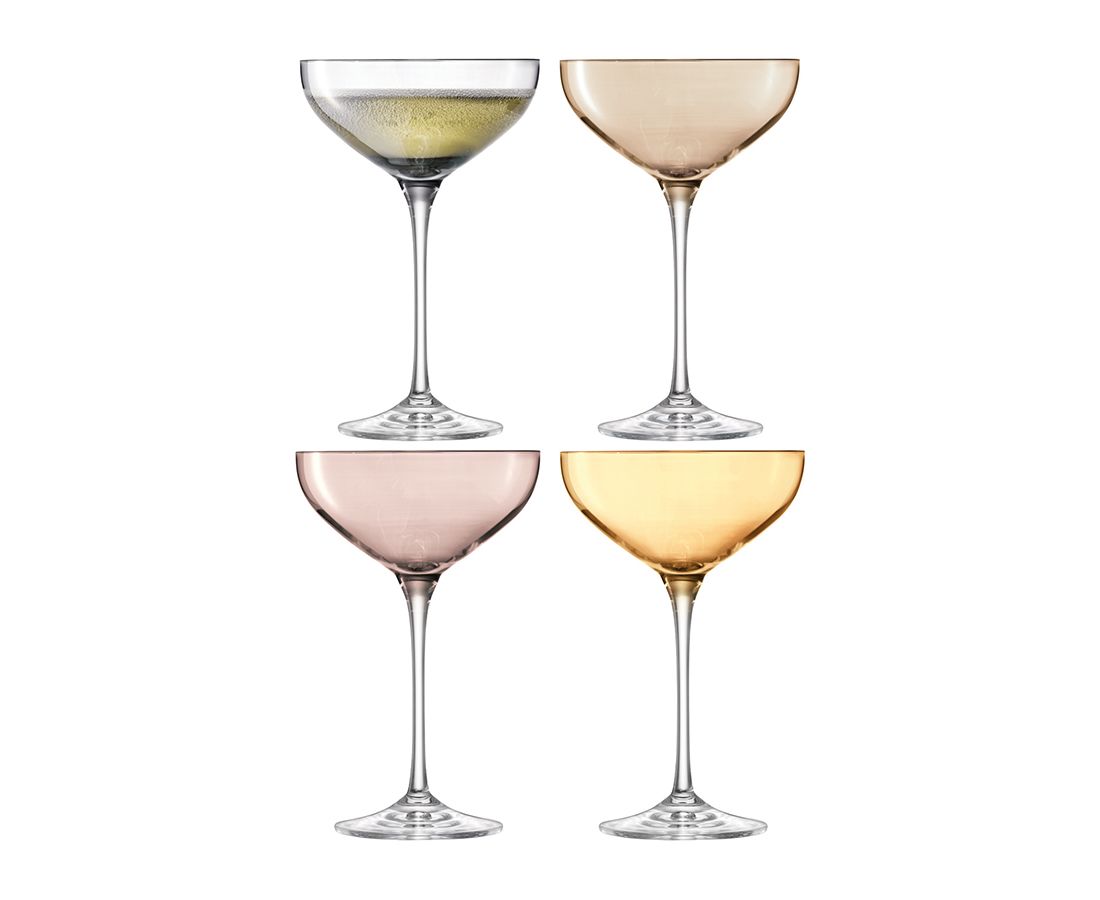 Набор из 4-х разноцветных бокалов-креманок для шампанского и десертов из выдувного стекла. Объем 235 мл. Комбинируйте их с другими предметами коллекции для создания весенней атмосферы в любимой гостиной или на веранде. Бокалы упакованы в красивую коробку и станут прекрасным подарком друзьям, коллегам и близким на памятную дату или просто так.