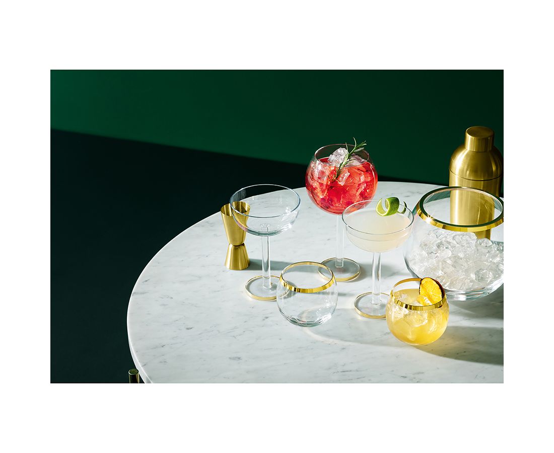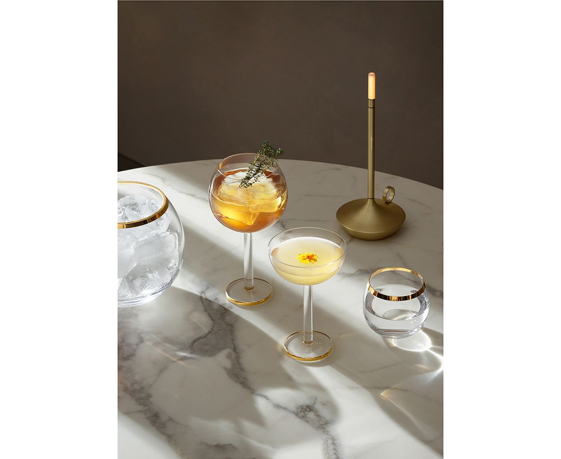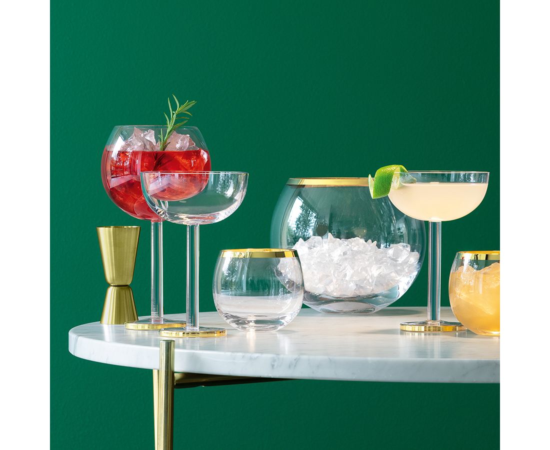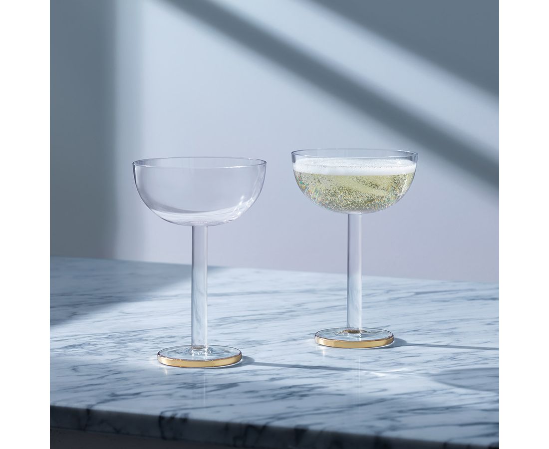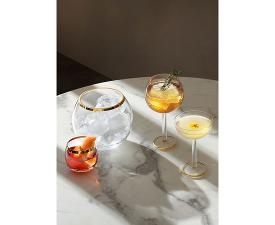 Креманки в современном дизайне со стильными золотистыми ободками украсят стол и прекрасно подойдут для подачи шампанского или коктейлей.