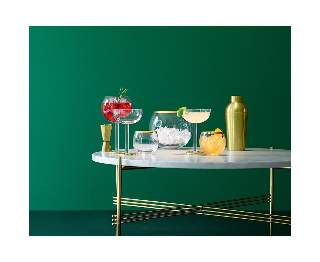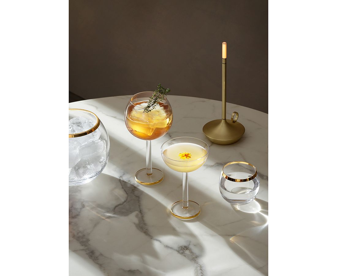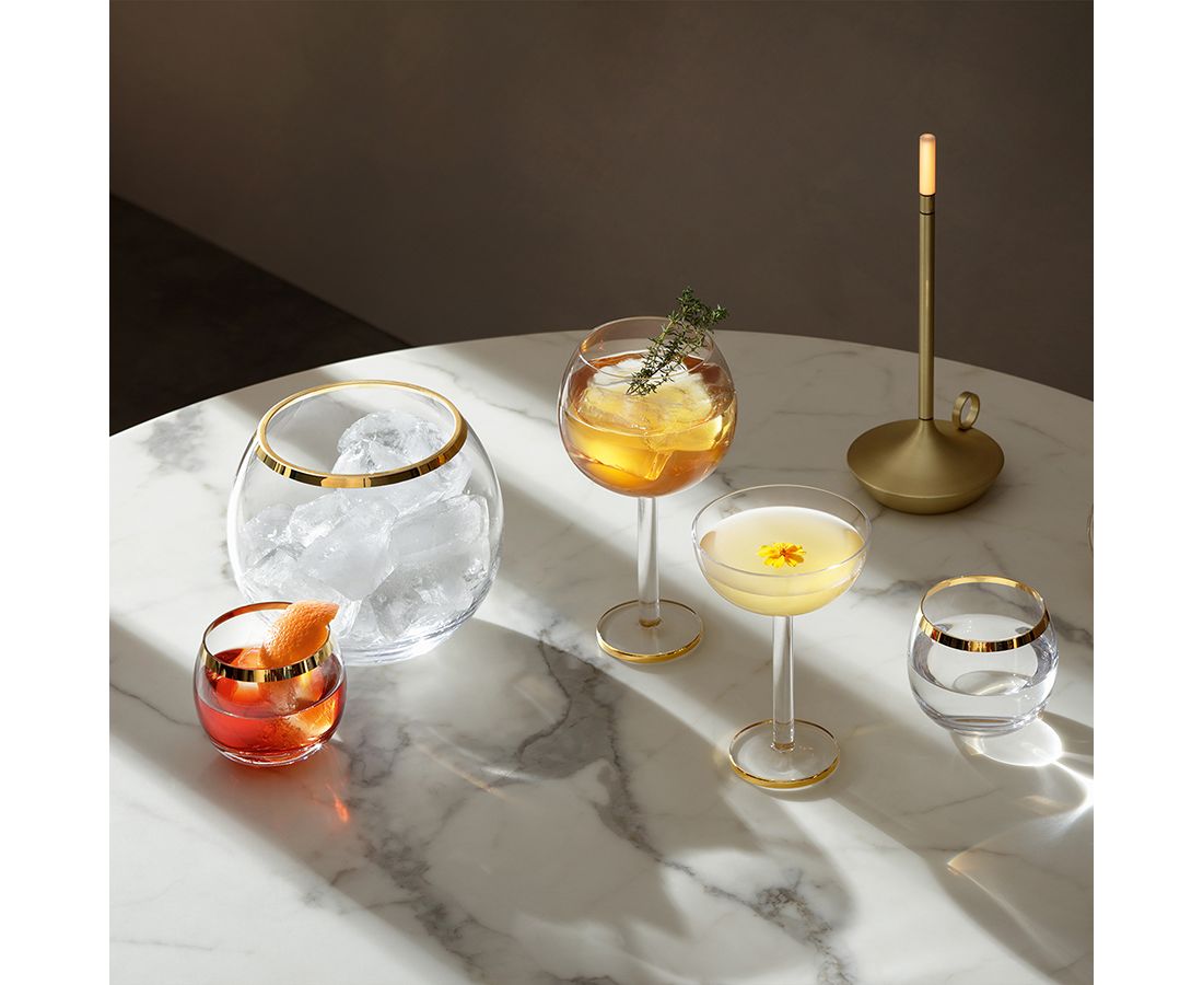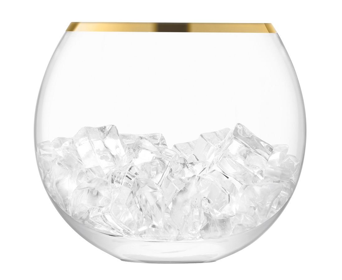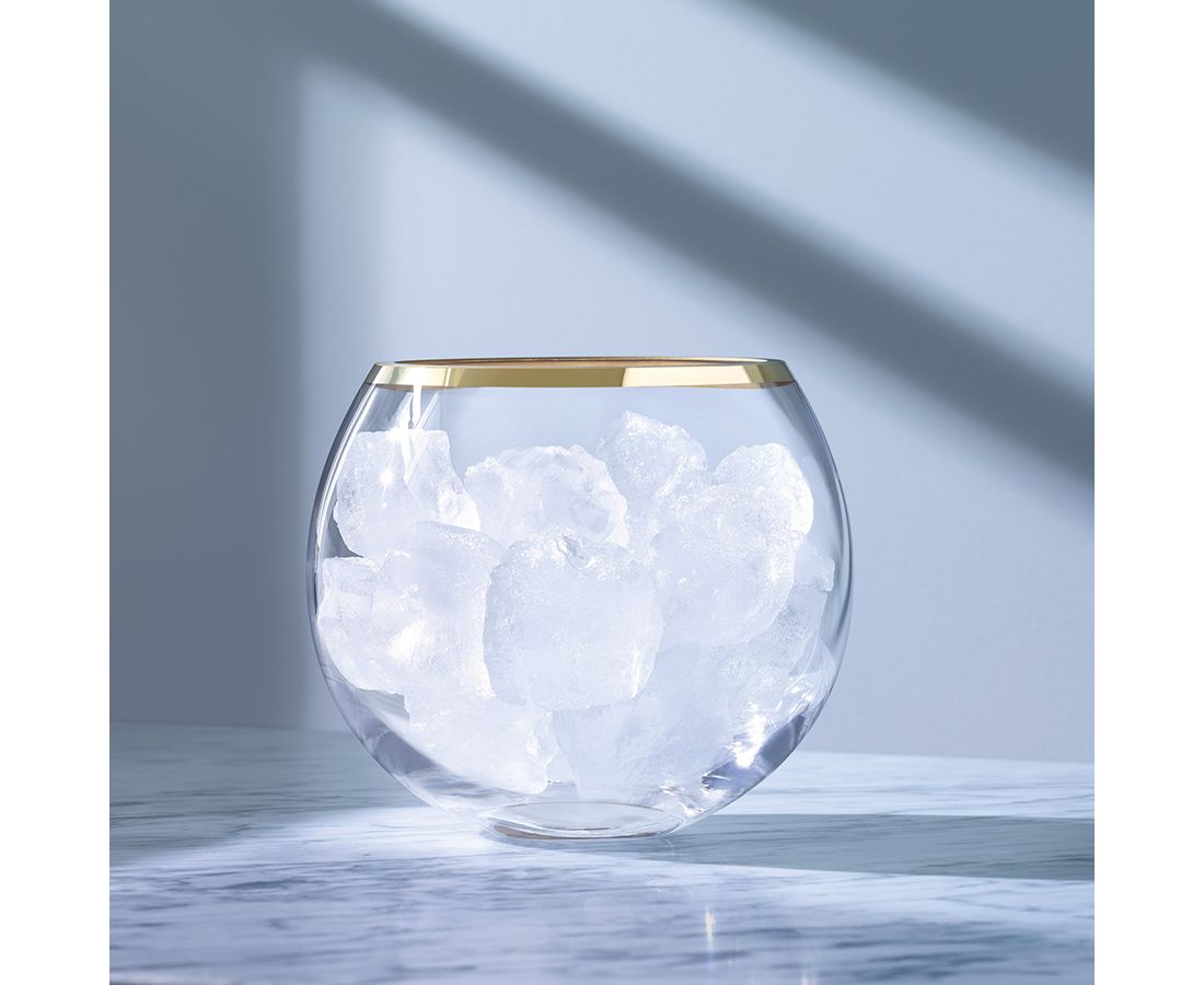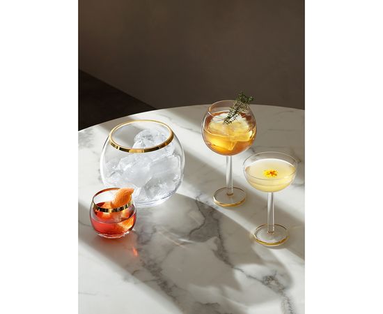 Ведерко для льда в современном дизайне со стильным золотистым ободком украсит стол и прекрасно подойдет для подачи шампанского.